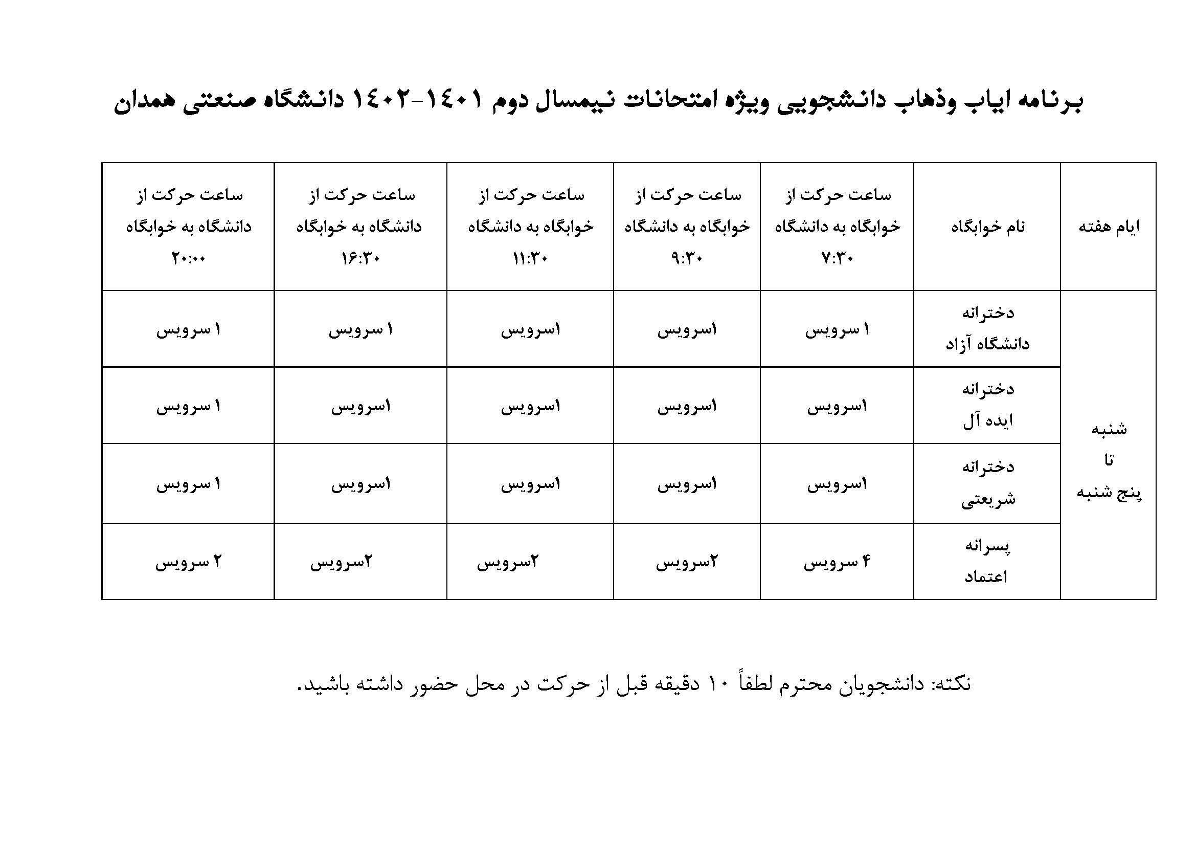 اطلاعیه ایاب و ذهاب ویژه امتحانات