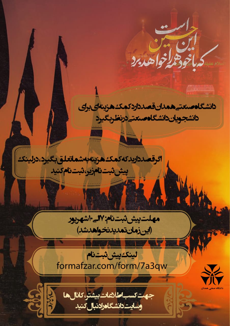 🔺به فضل الهی و در سایه‌ی عنایات حضرات اهل بیت علیهم السلام ، دانشگاه صنعتی همدان قصد دارد کمک هزینه ای برای دانشجویان دانشگاه صنعتی در نظر بگیرد.