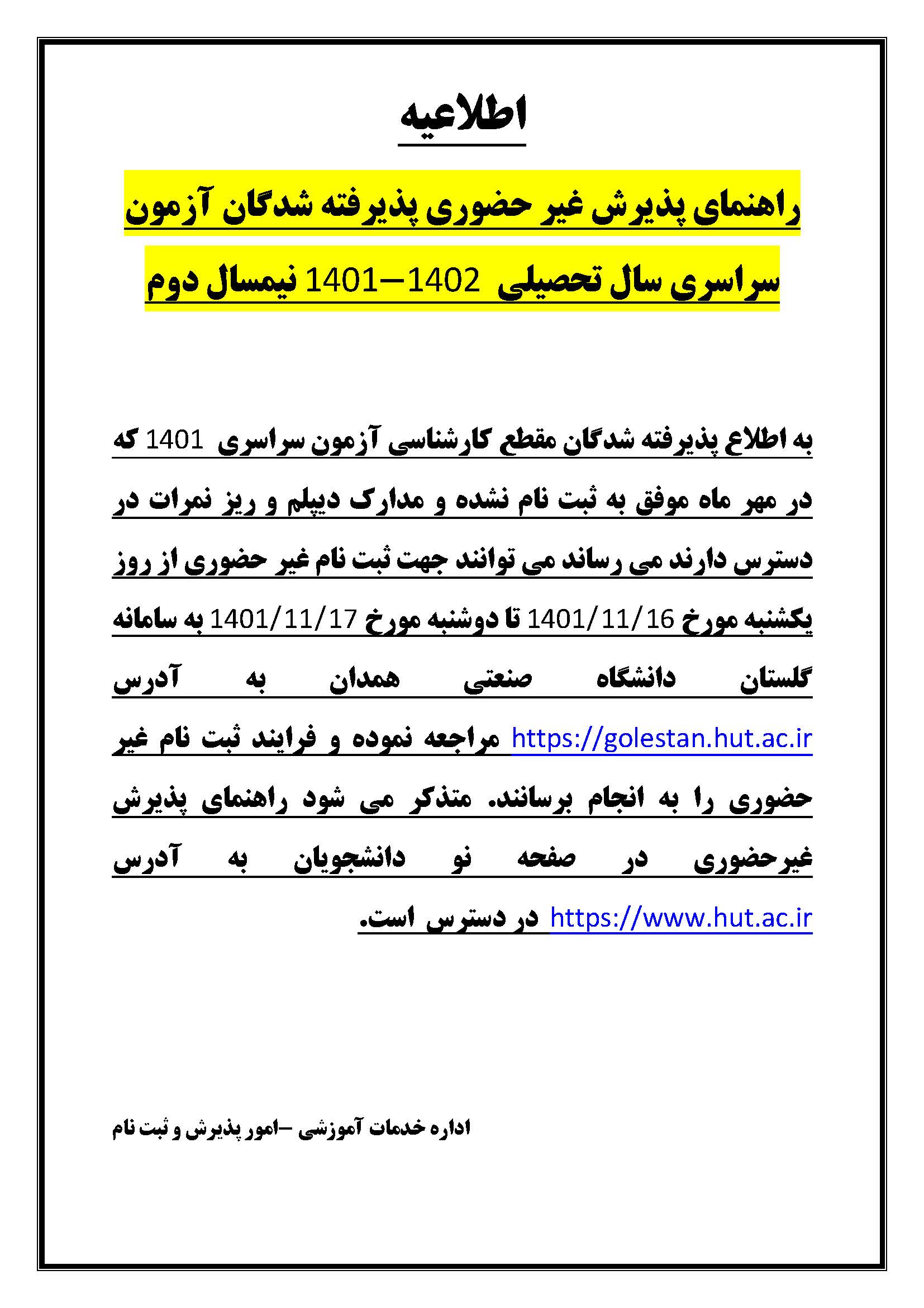 اطلاعیه ثبت نام غیر حضوری نیمسال دوم 1401