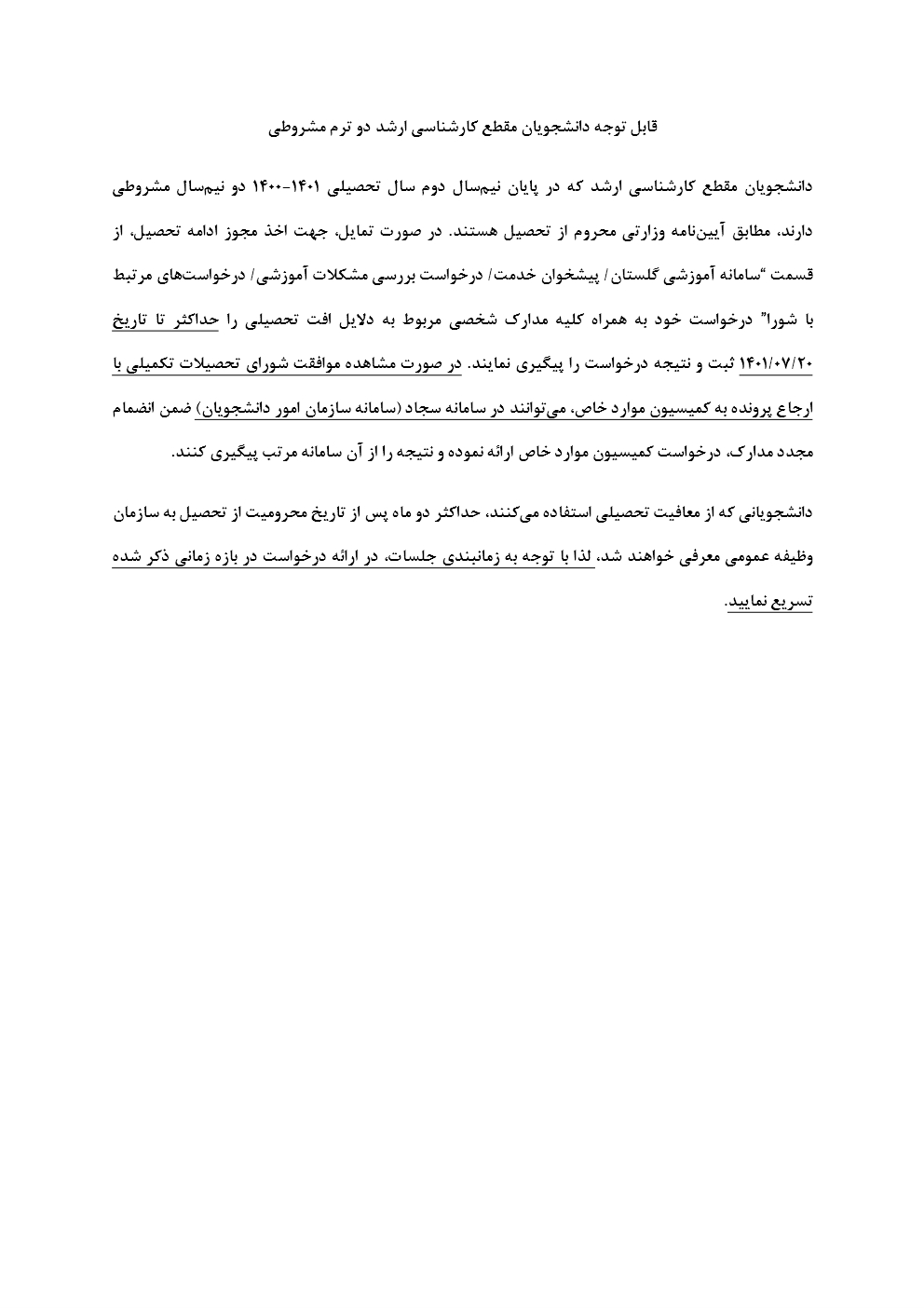 اطلاعیه در خصوص دانشجویان کارشناس ارشد دو ترم مشروط