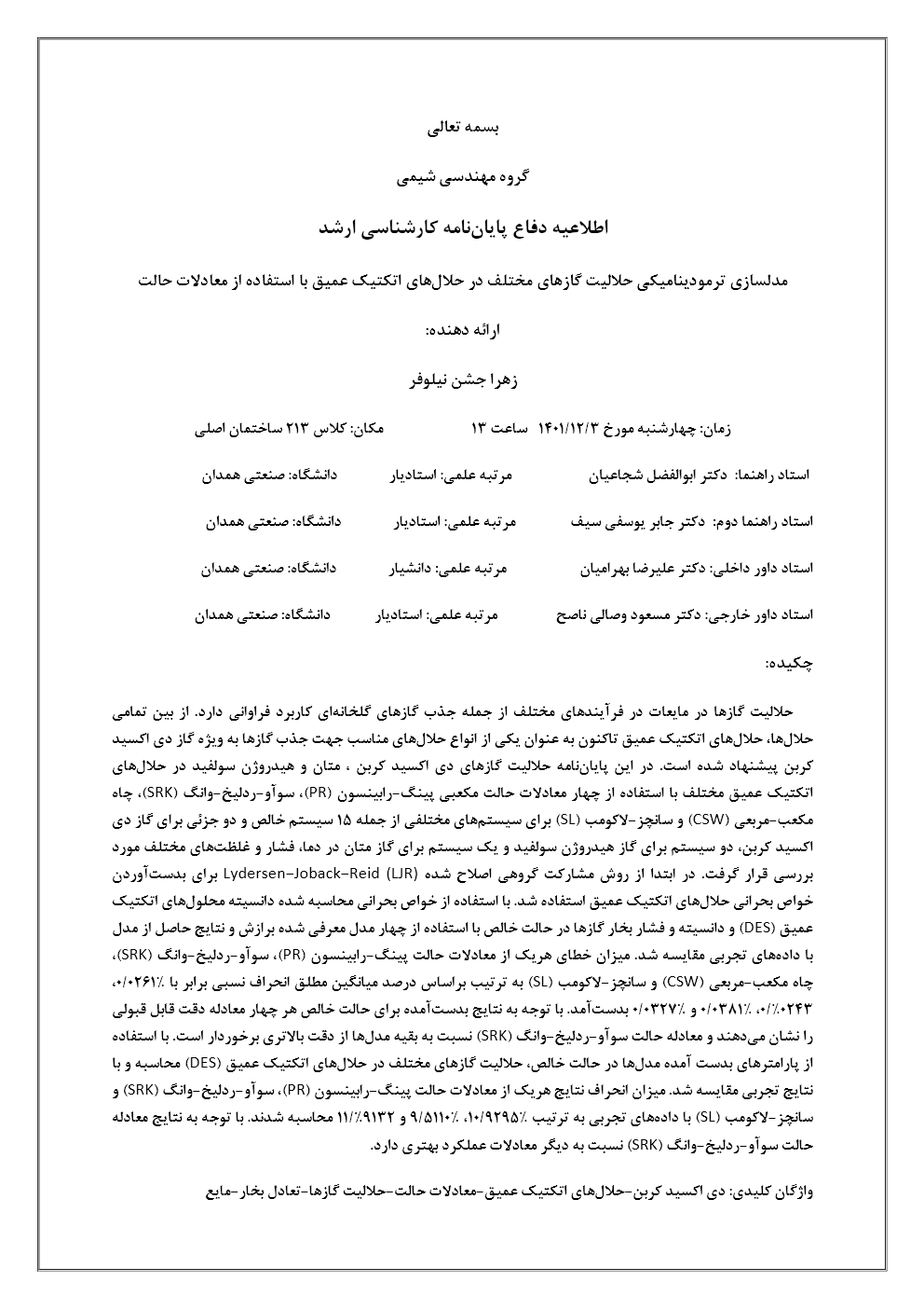 اطلاعیه دفاع دانشجوی کارشناسی ارشد - جشن نیلوفر