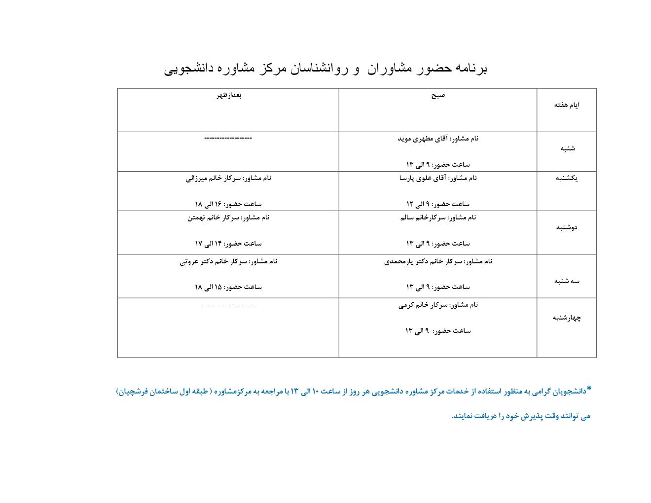 برنامه حضور مشاوران