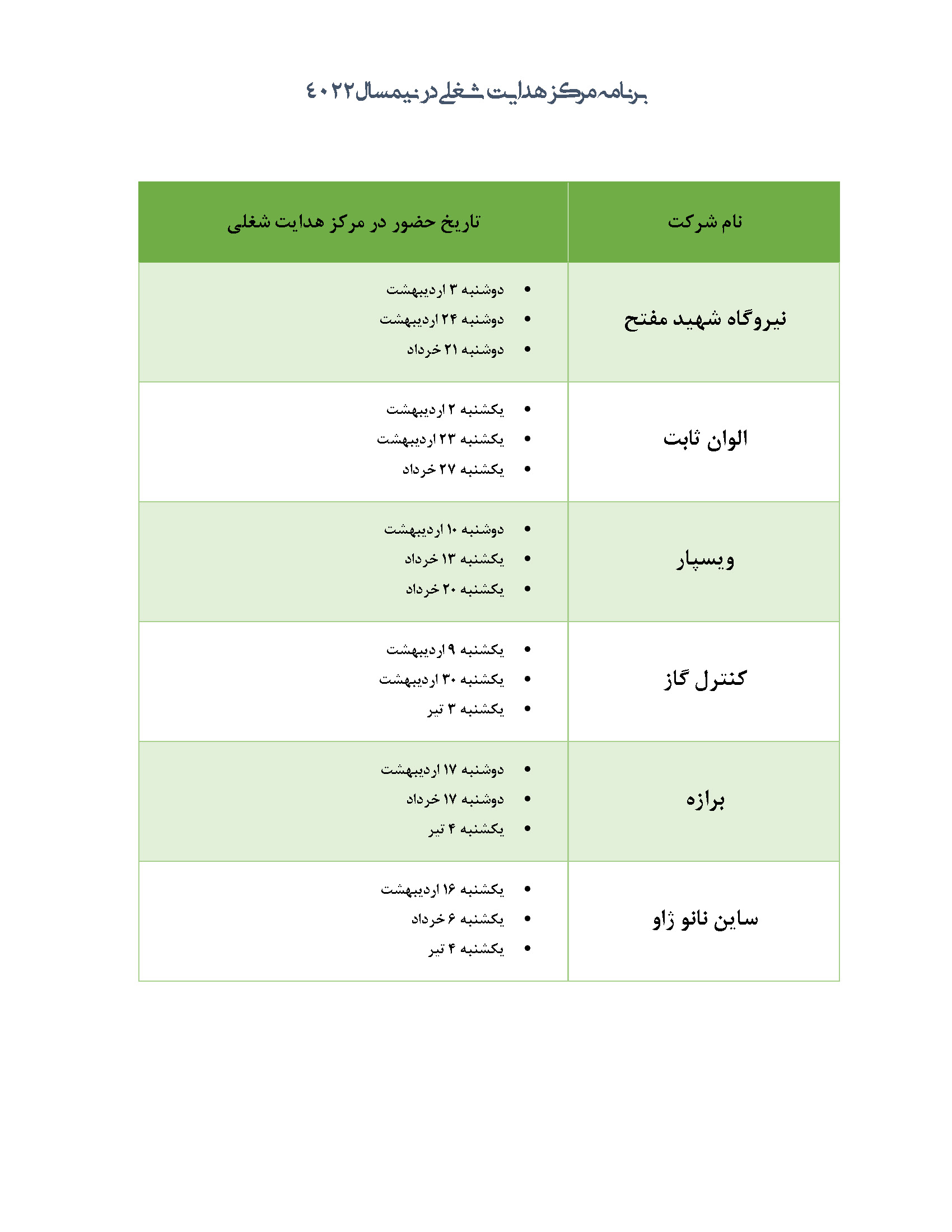 برنامه مرکز هدایت شغلی در نیمسال 4022