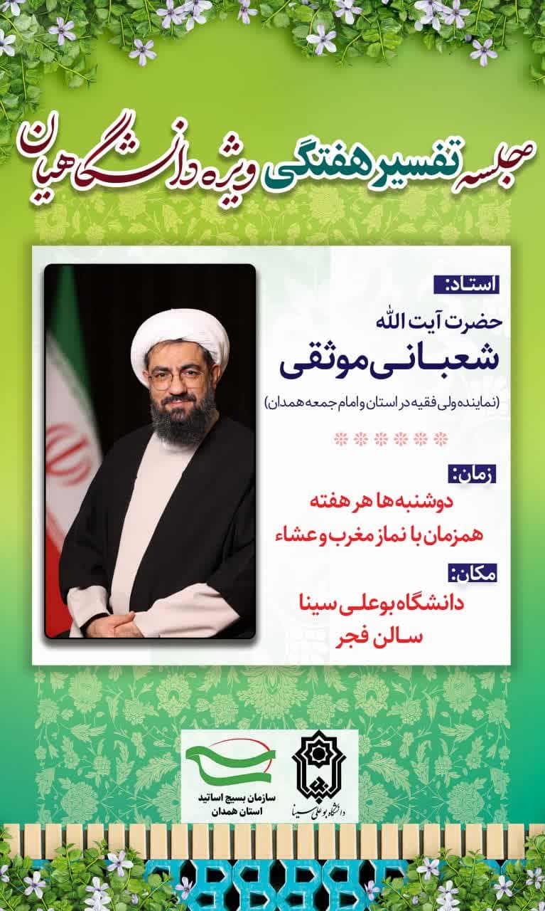 📣برگزاری جلسات #هفتگی تفسیر قرآن کریم با حضور استاد حضرت آیت الله #شعبانی_موثقی در #دانشگاه_بوعلی_سینا