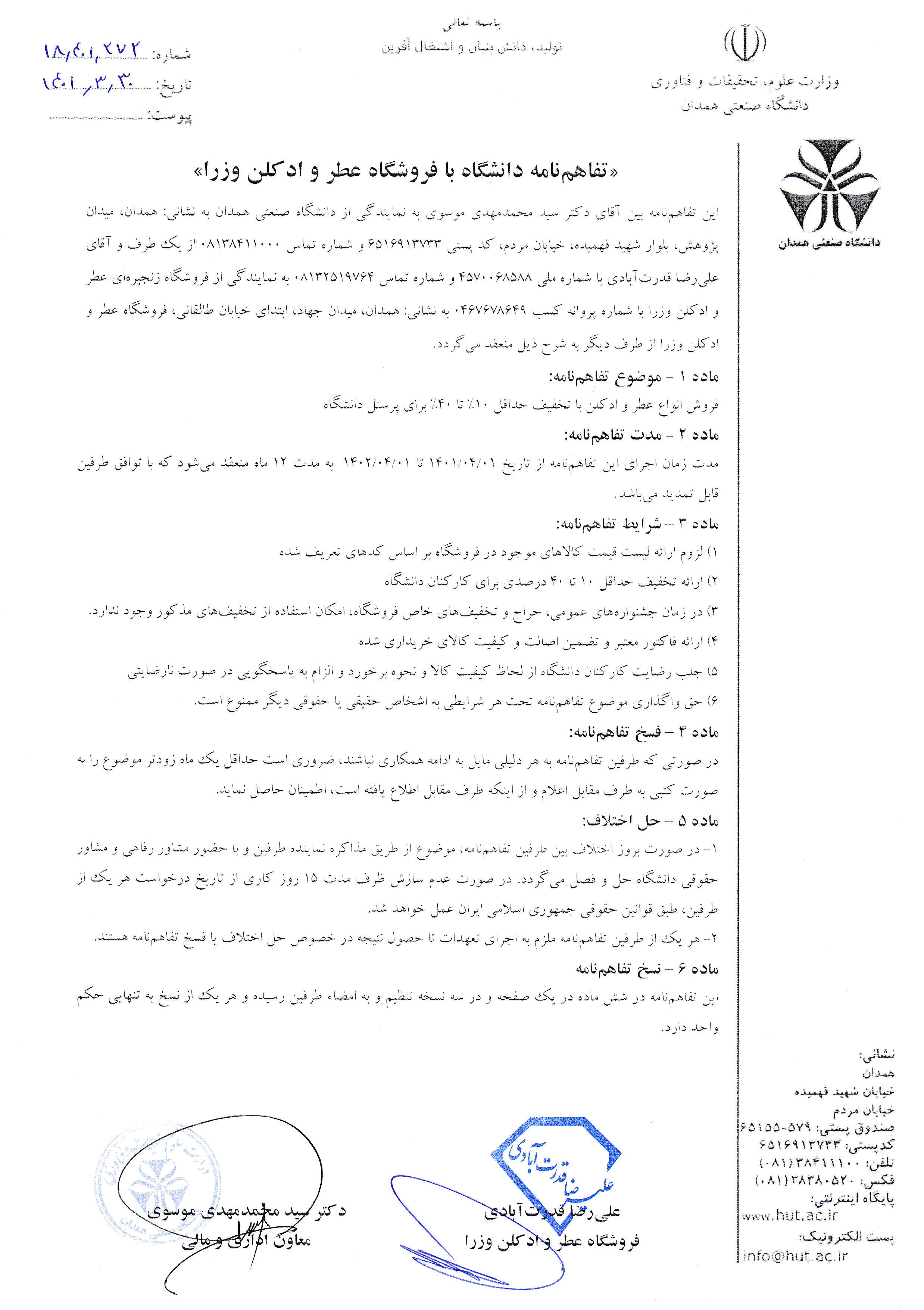 تفاهمنامه با فروشگاه عطر و ادکلن وزرا