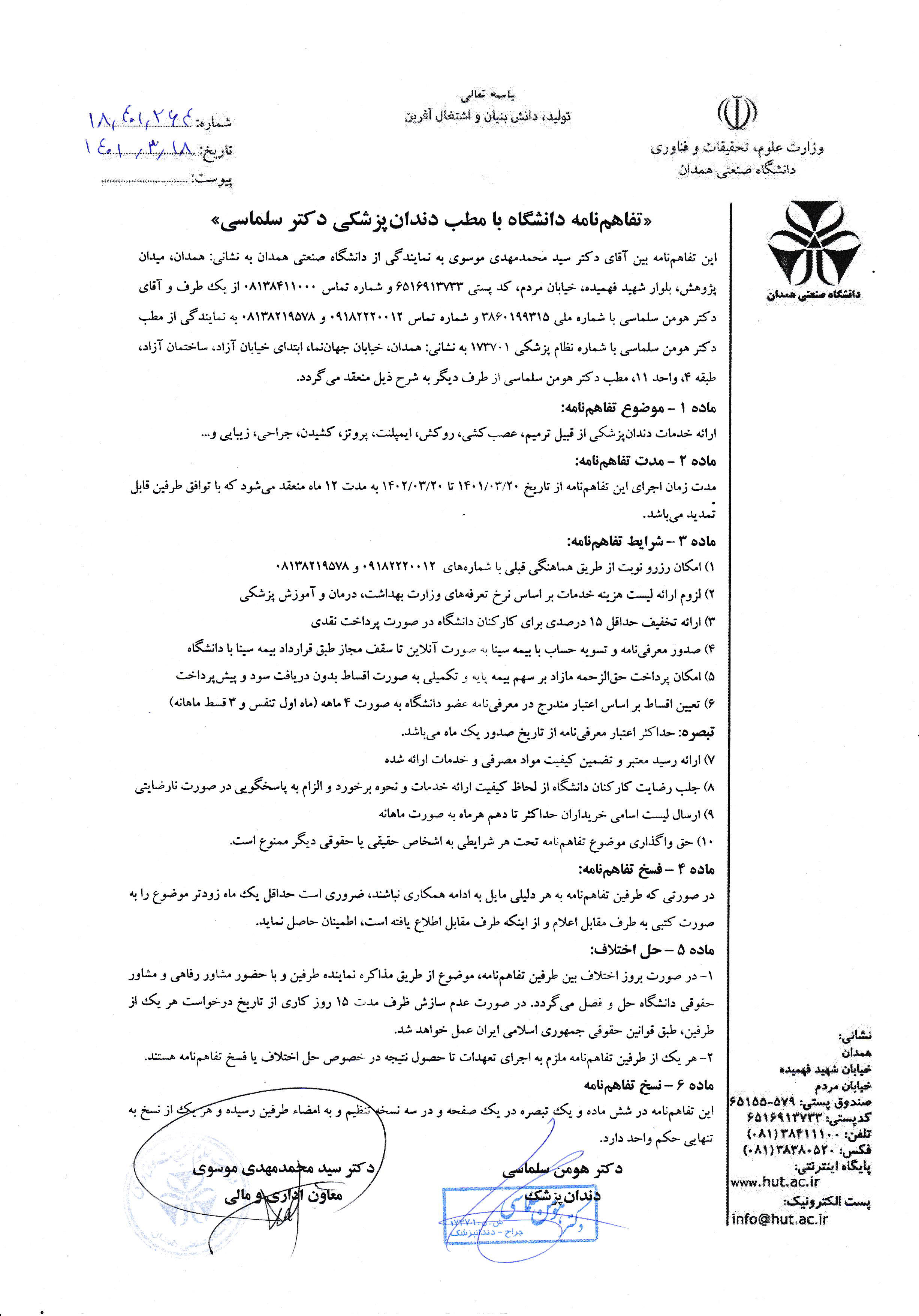 تفاهم نامه با دندانپزشکی دکتر سلماسی