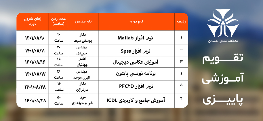 تقویم آموزشی مرکز آموزش های آزاد و مجازی دانشگاه صنعتی همدان