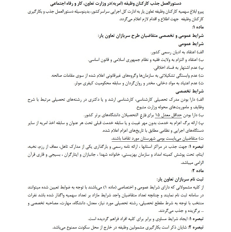 جذب نیروی امریه در وزارت تعاون، کار و رفاه اجتماعی