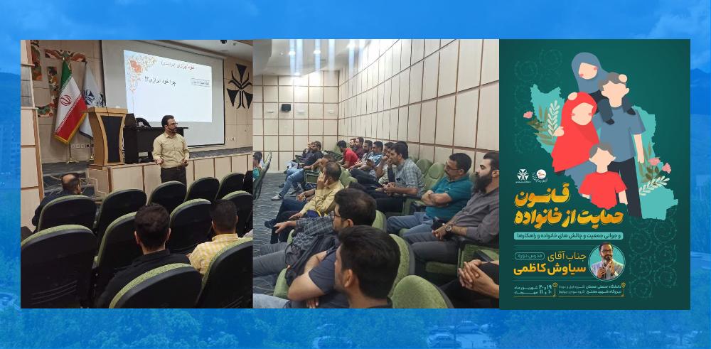 دوره قانون تحکیم خانواده، جوانی جمعیت، چالشهای خانواده و راهکارها از سری دورههای مرکز جامع صلاحیت حرفهای صنعت آب و برق روزهای ۱۹ و ۲۰ شهریورماه برگزار شد.