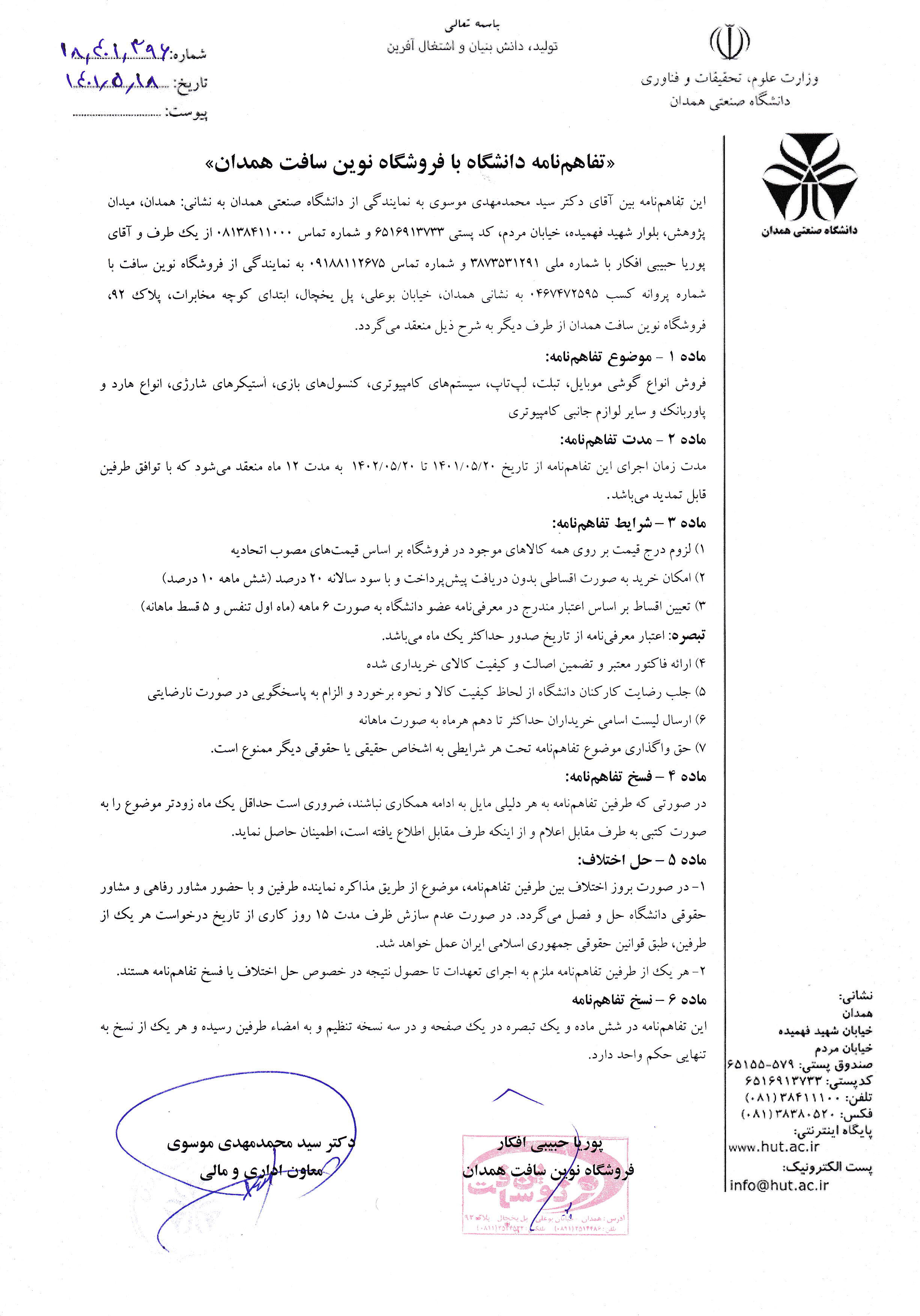 رفاهیات : تفاهم نامه با شرکت نوین سافت
