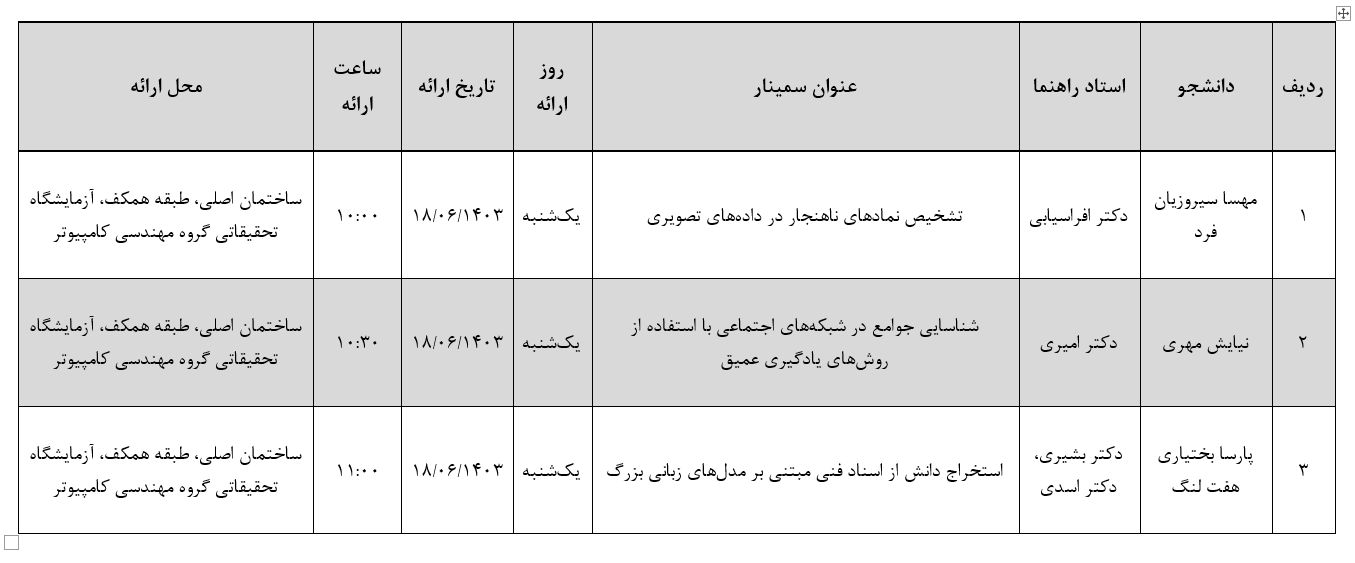 سمینار دانشجویان ارشد گروه مهندسی کامپیوتر
