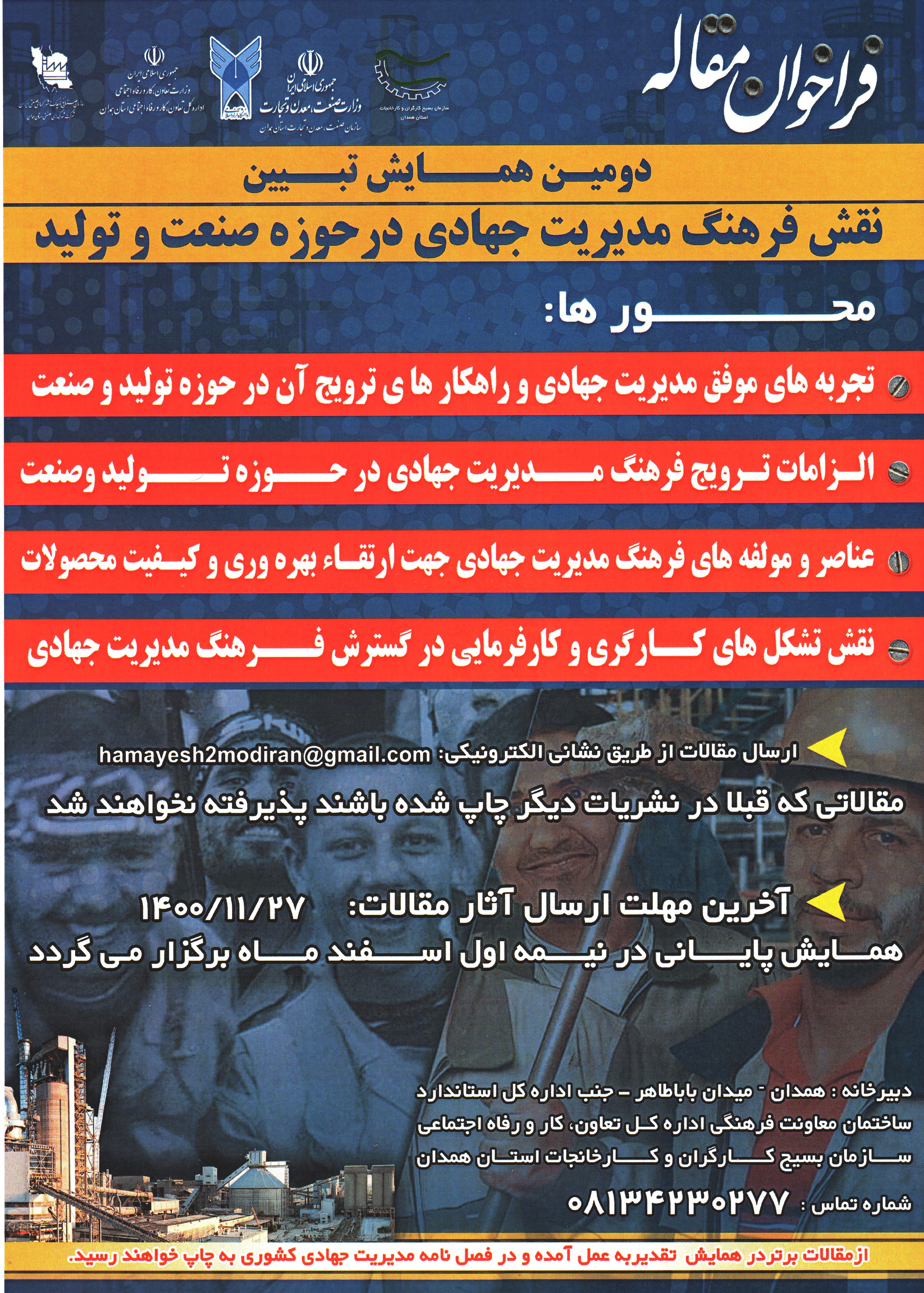 فراخوان مقاله دومین همایش تبین نقش فرهنگ مدیریت جهادی در حوزه صنعت و تولید
