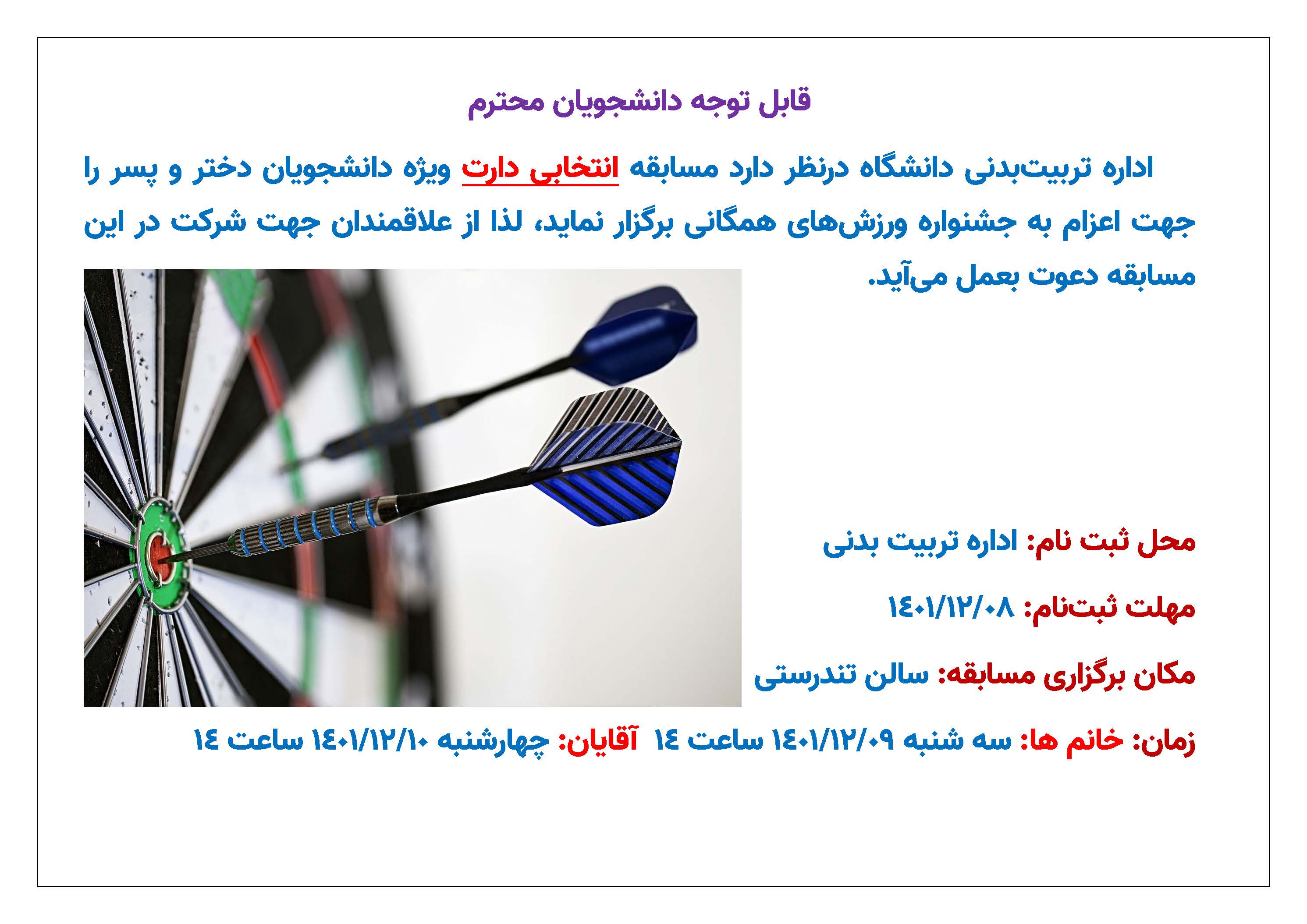 مسابقات دارت انتخابی جشنواره ورزش های همگانی