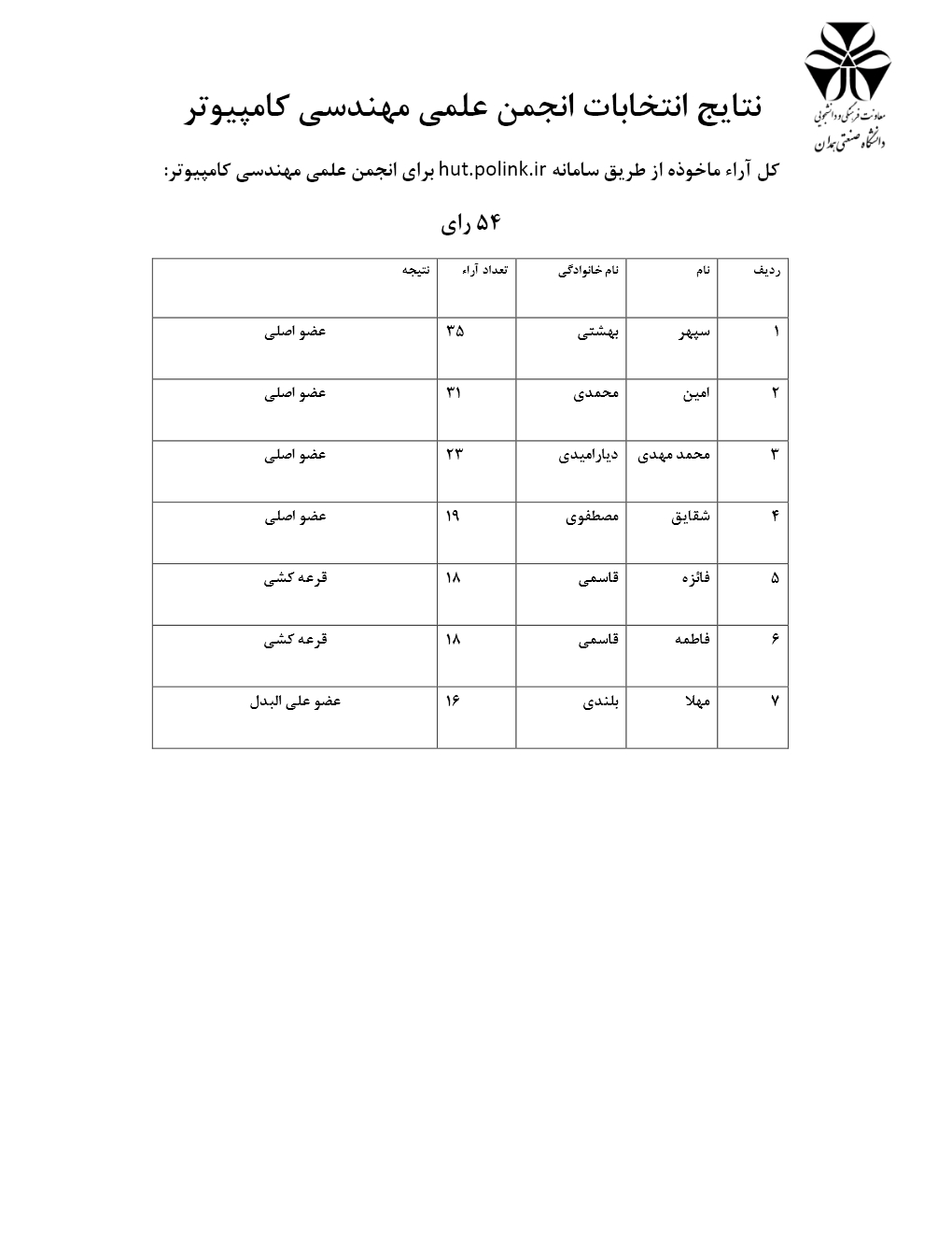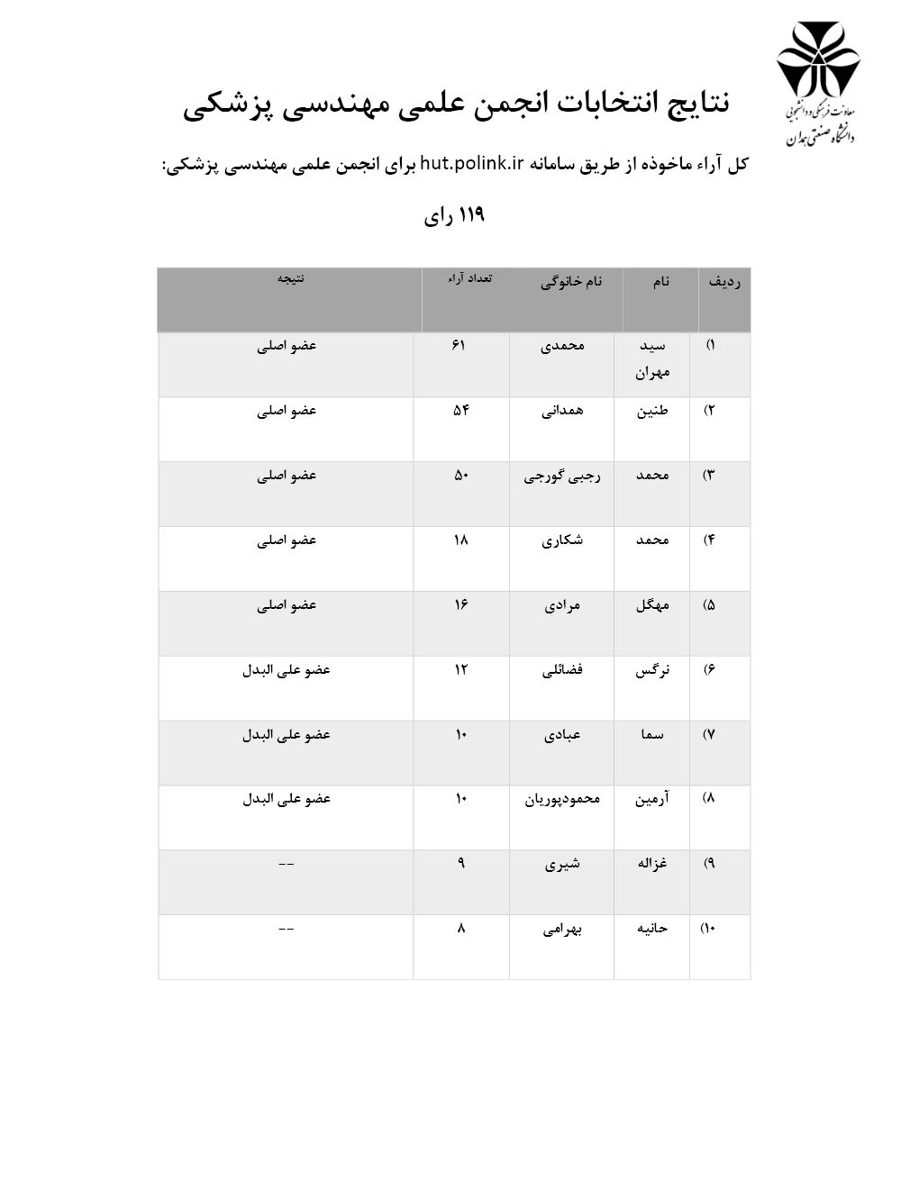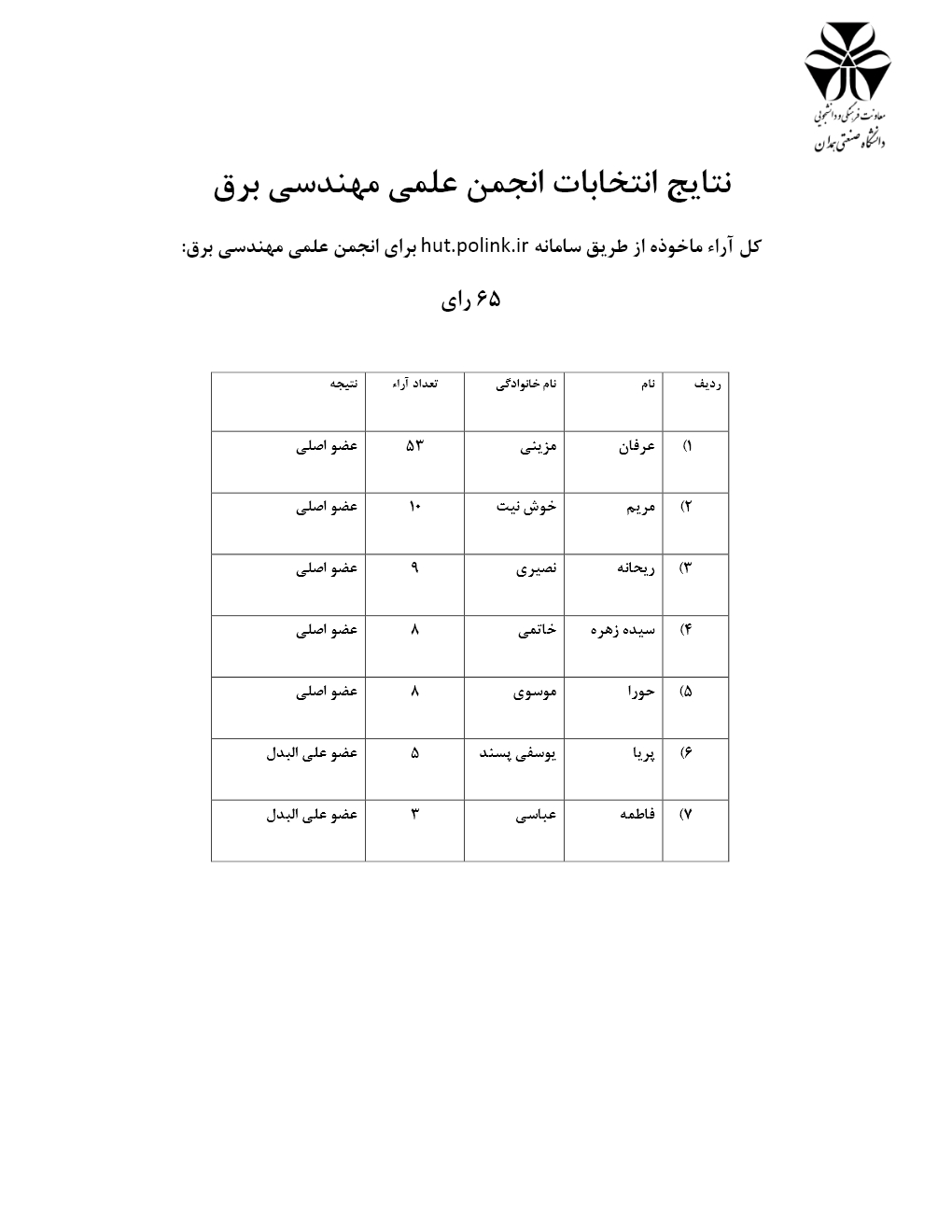 نتایج انتخابات انجمن های علمی