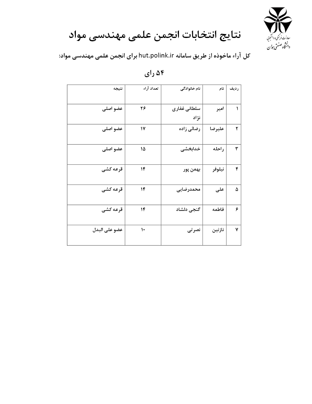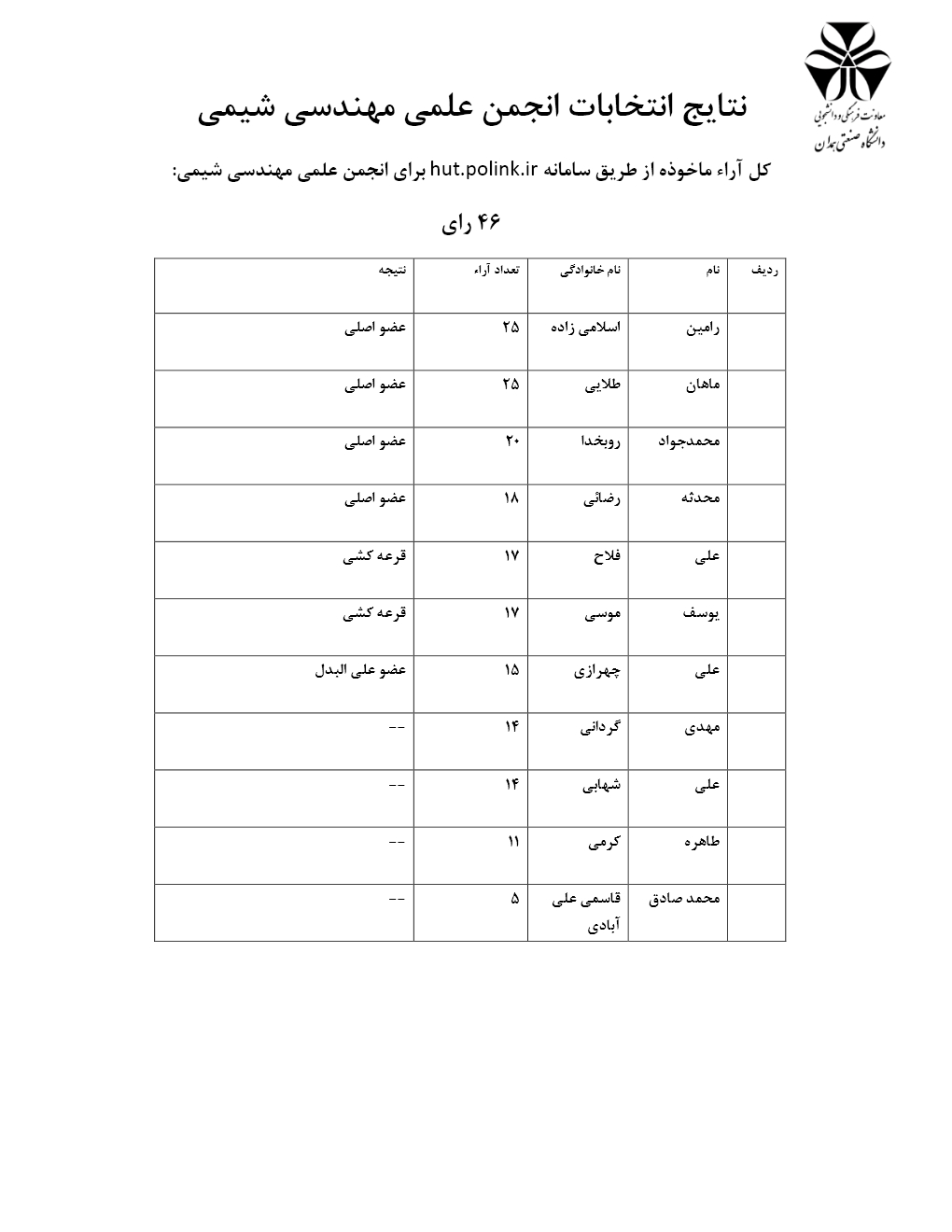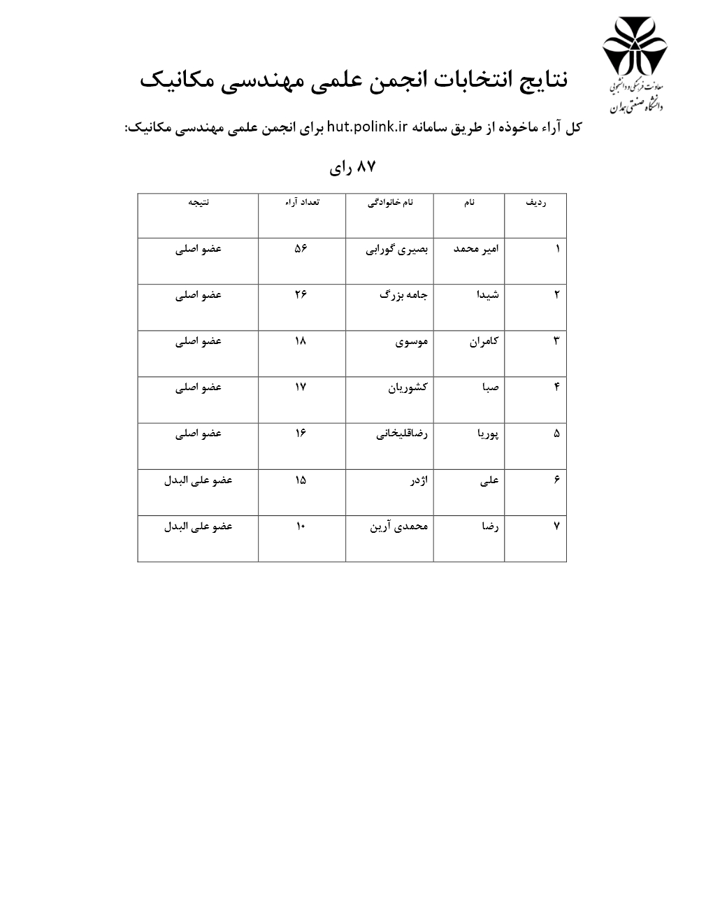 نتایج انتخابات انجمن های علمی