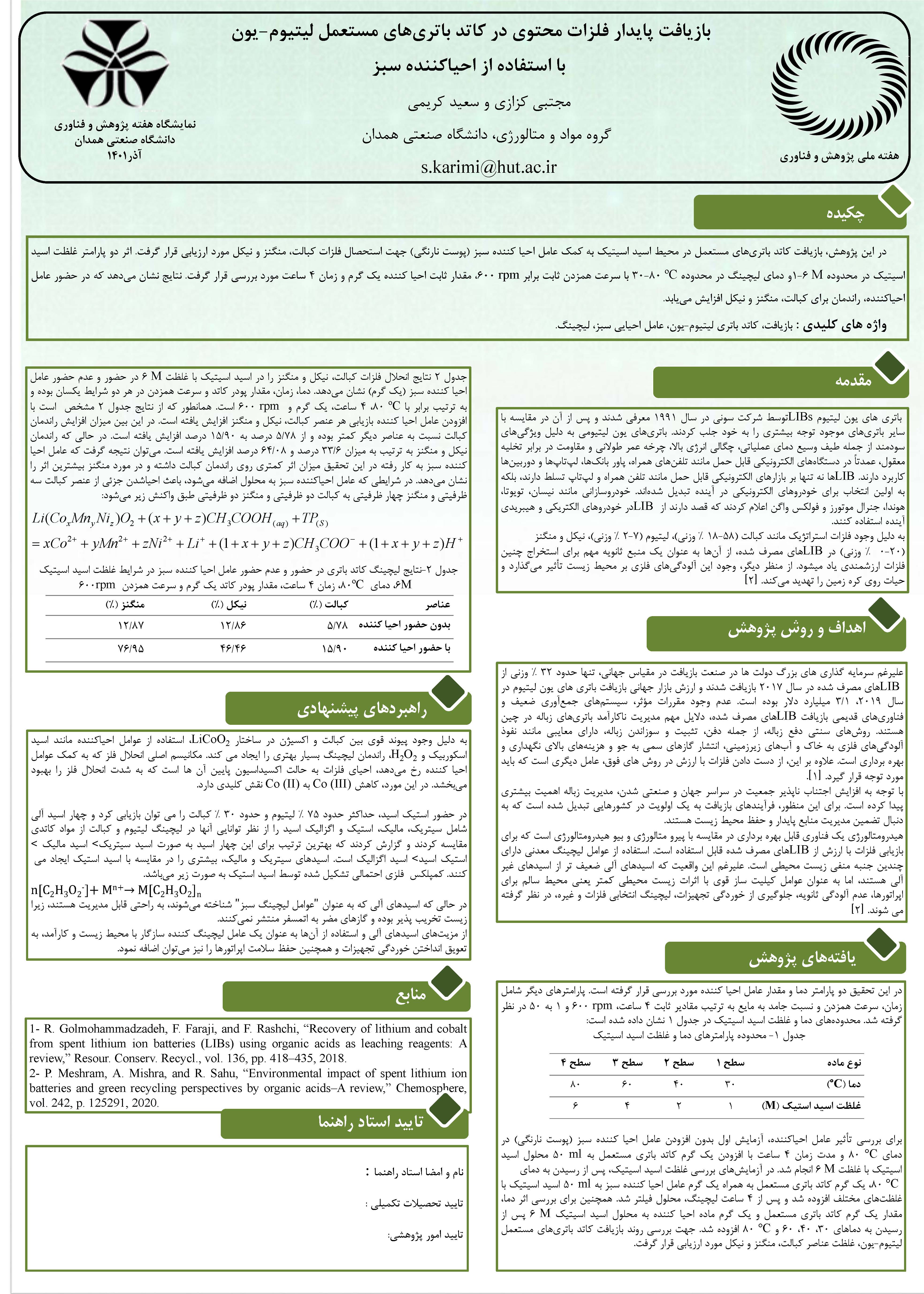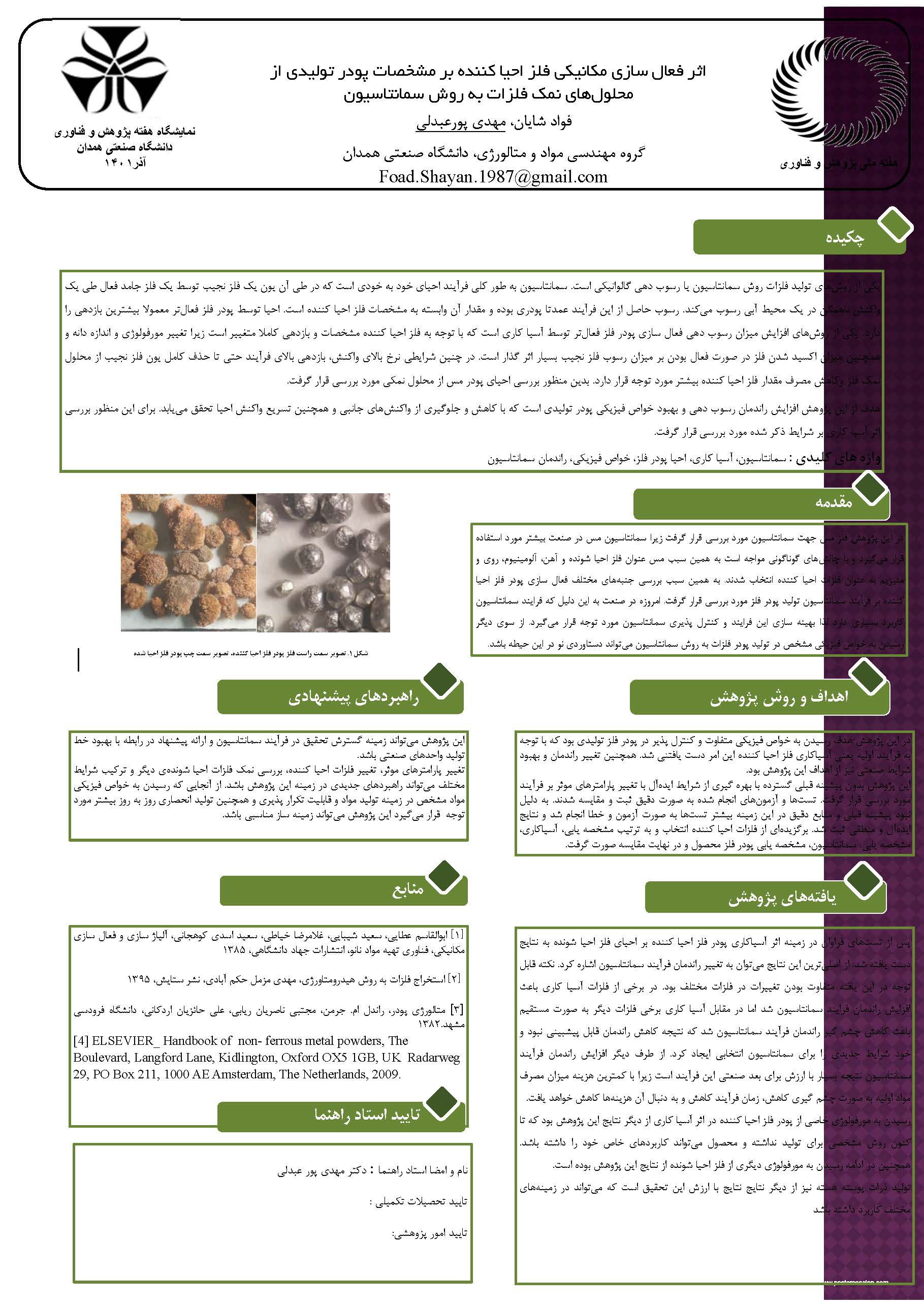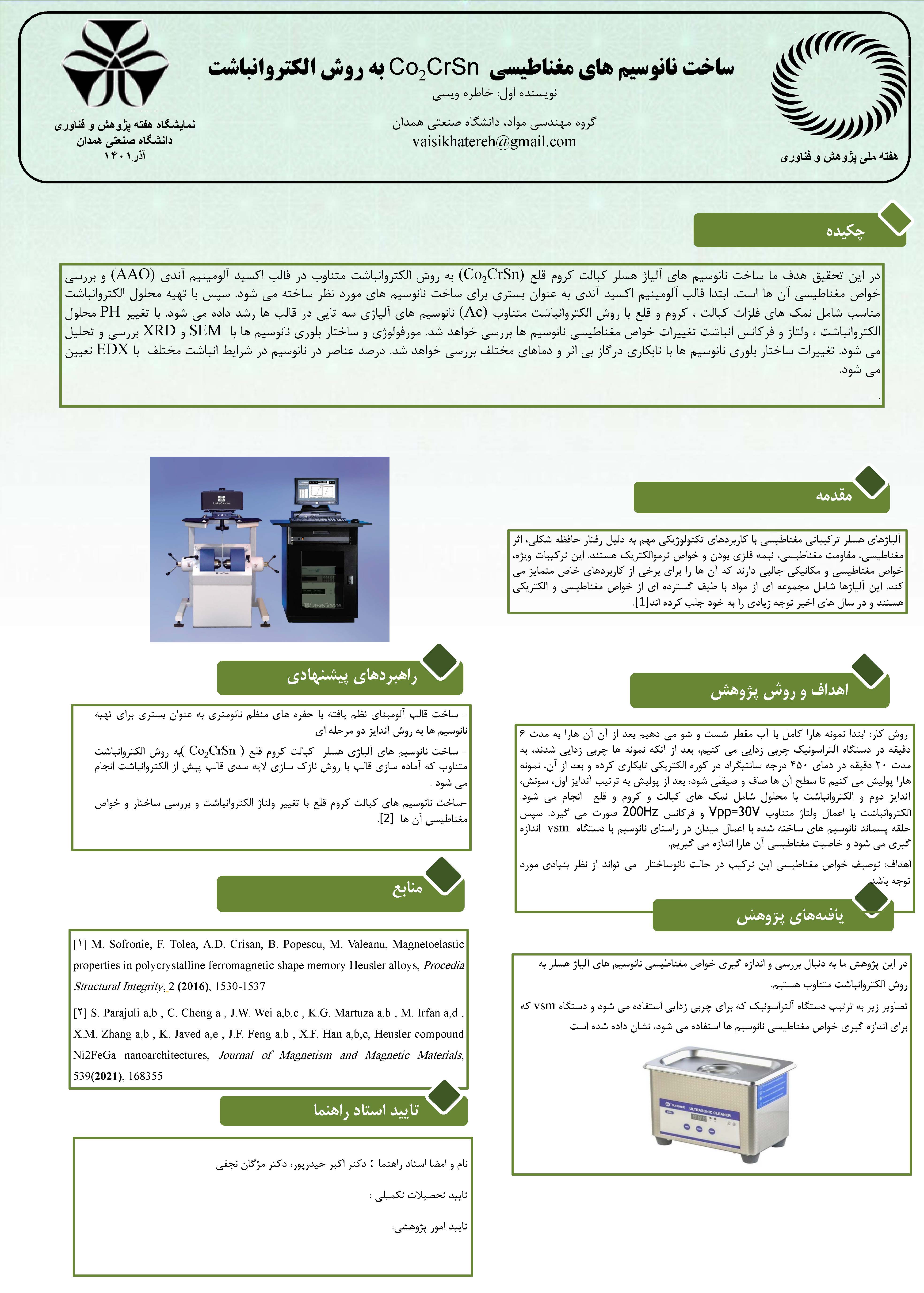 پوستر دانشجویان تحصیلات تکمیلی به مناسبت هفته پژوهش سال 1401 ( مهندسی مواد )
