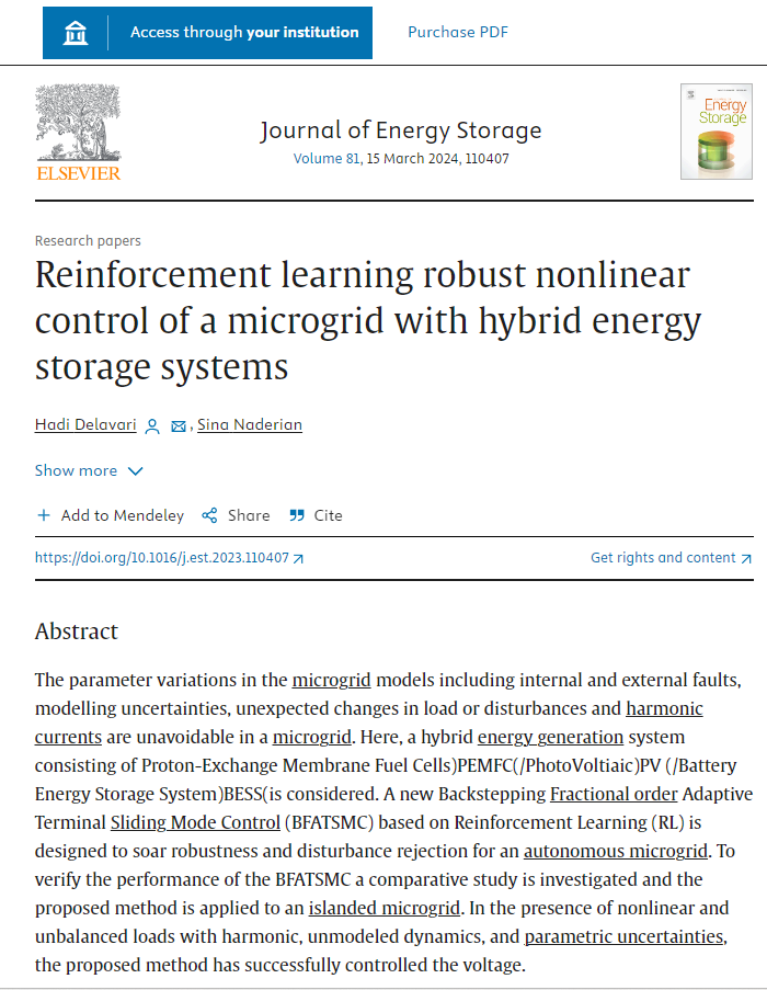 در مجله Journal of Energy Storage با ضریب تاثیر 9.4 منتشر شده است.