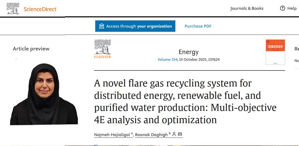 خانم دکتر نجمه حاجی‌علی‌گل عضو هیات علمی گروه مهندسی مکانیک دانشگاه صنعتی همدان با همکاری دکتر روناک دقیق موفق به چاپ مقاله در مجله Energy شدند.