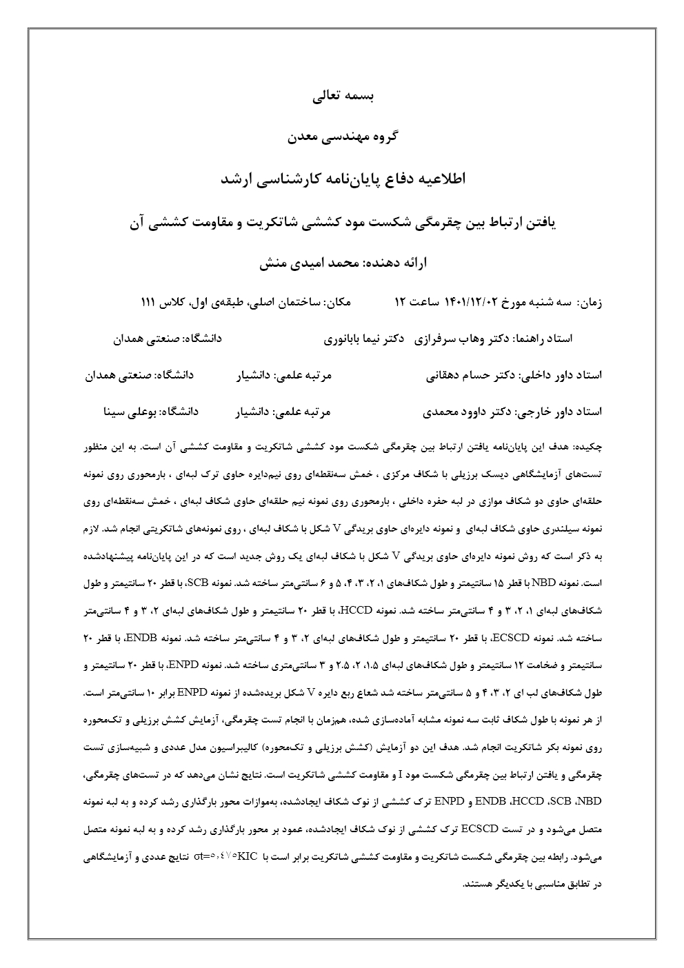 اطلاعیه دفاع دانشجوی کارشناسی ارشد - محمد امیدی منش