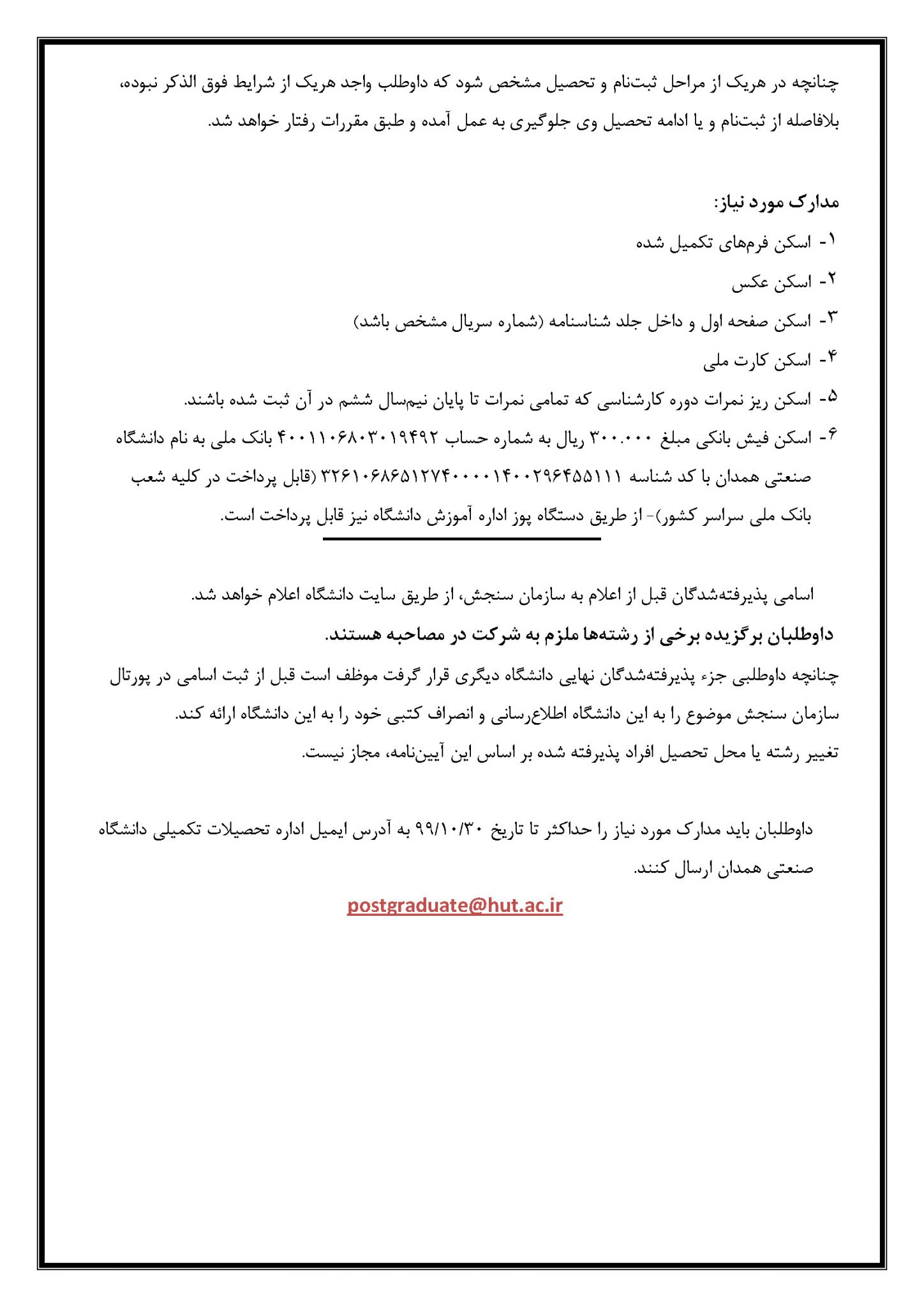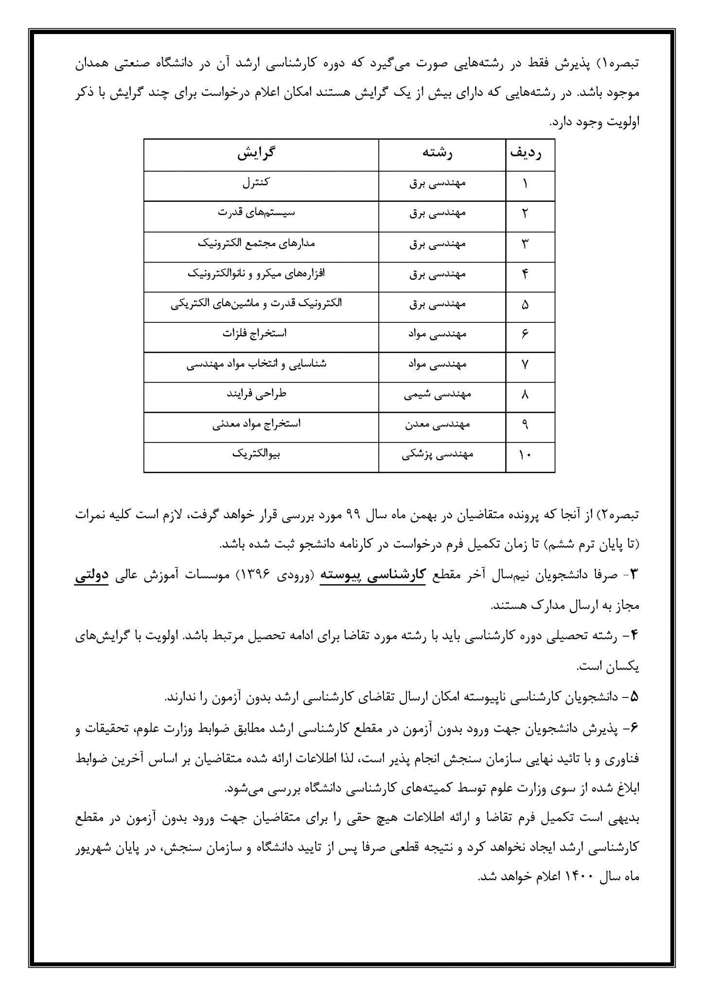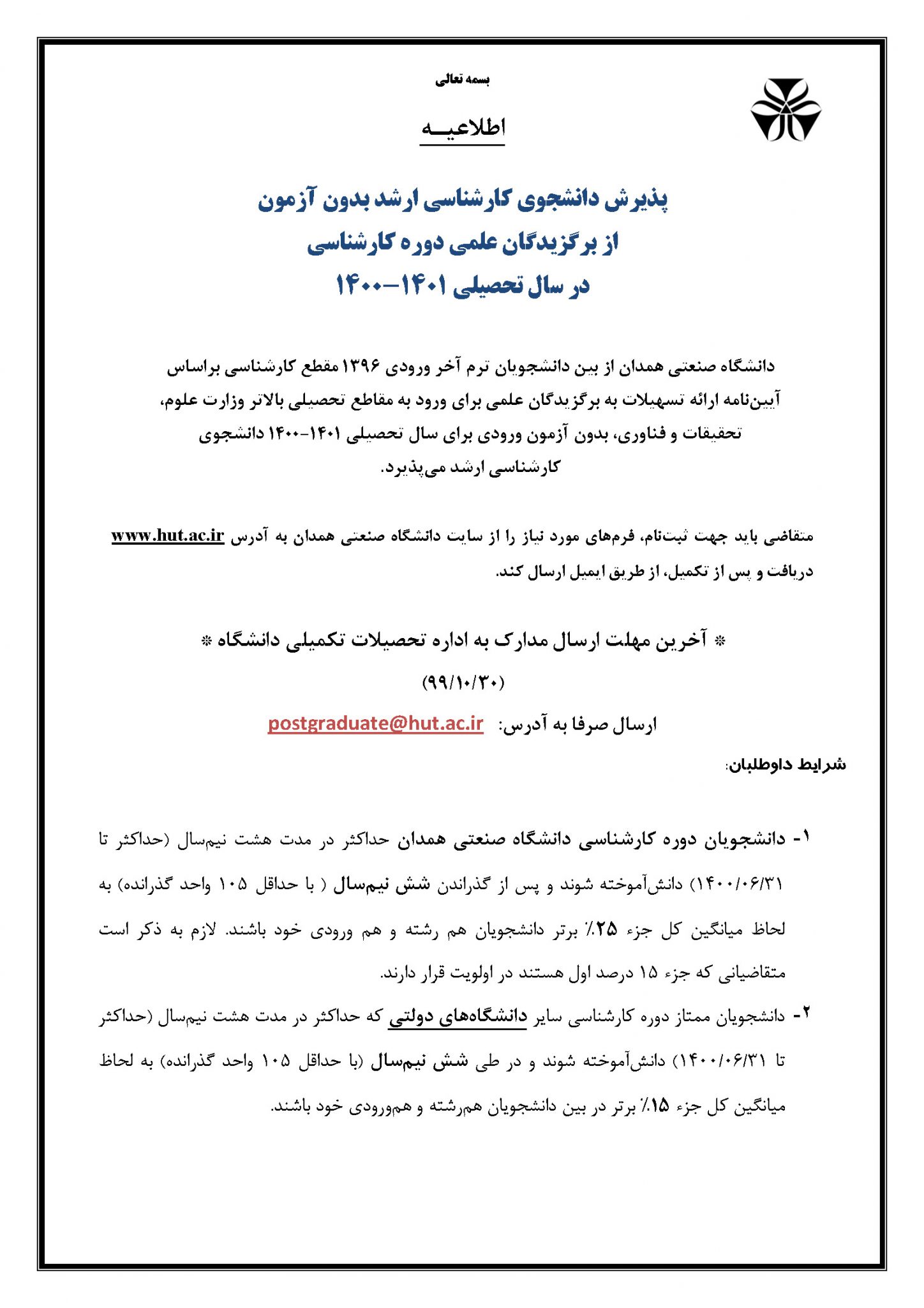 پذیرش دانشجوی کارشناسی ارشد بدون آزمون از برگزیدگان علمی دوره کارشناسی در سال تحصیلی ۱۴۰۱-۱۴۰۰
