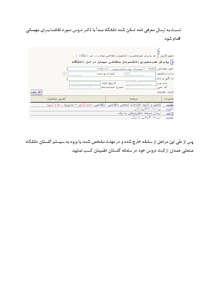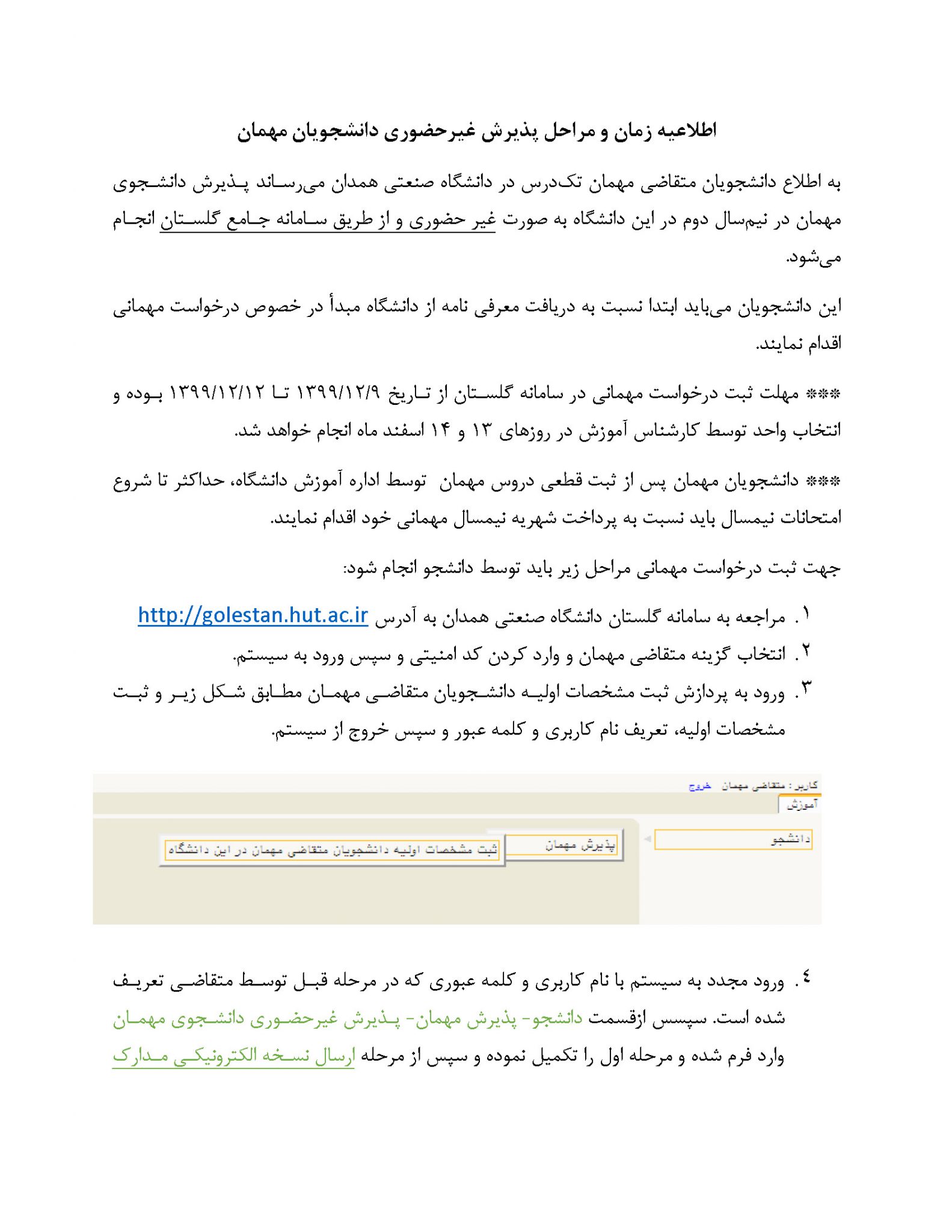 اطلاعیه زمان و مراحل پذیرش غیرحضوری دانشجویان مهمان
