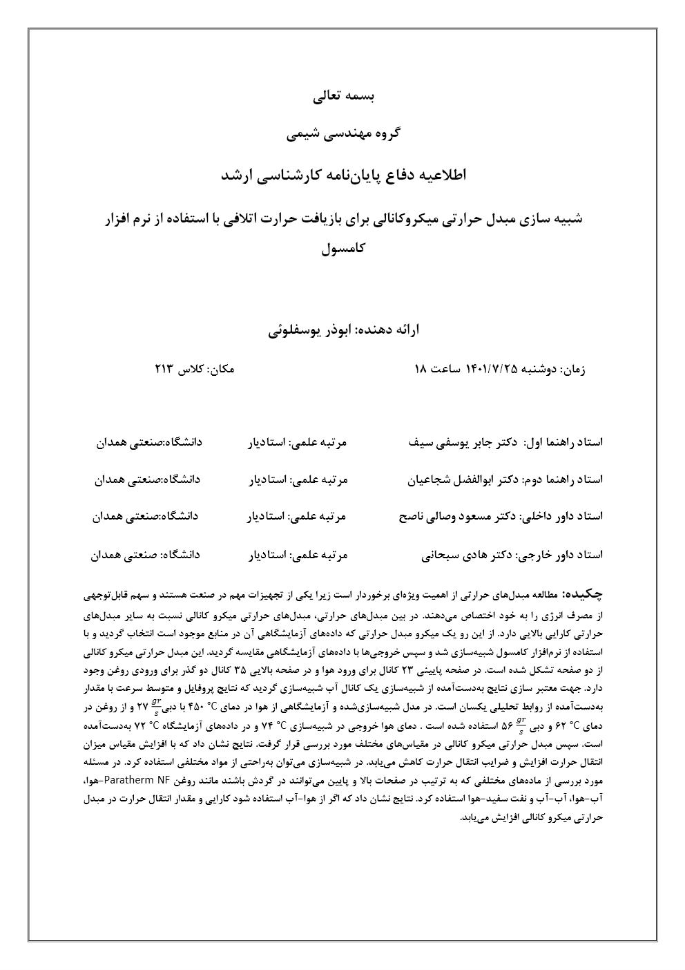 اطلاعیه دفاع دانشجوی کارشناسی ارشد در سایت دانشگاه-ابوذر یوسفلویی