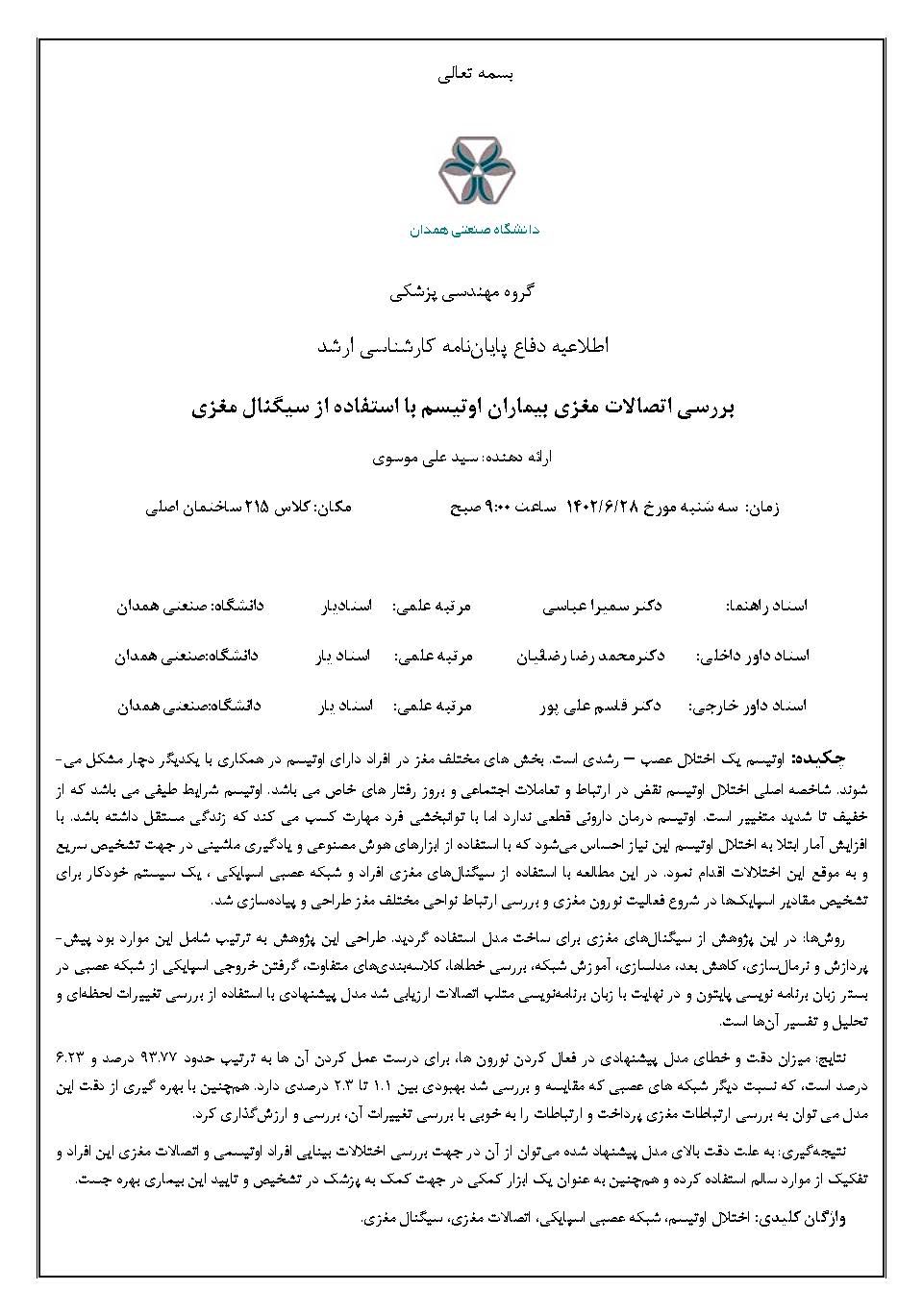 اطلاعیه دفاع دانشجوی کارشناسی ارشد -سید علی موسوی